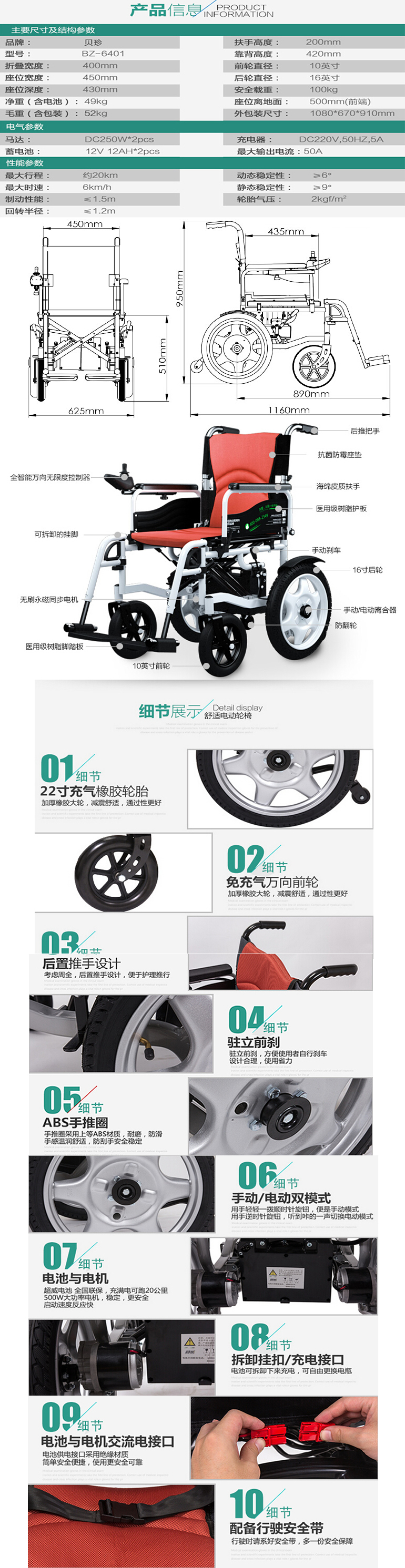 名稱: 唐山輪椅_貝珍電動(dòng)輪椅BZ-6401_唐山醫(yī)療器械