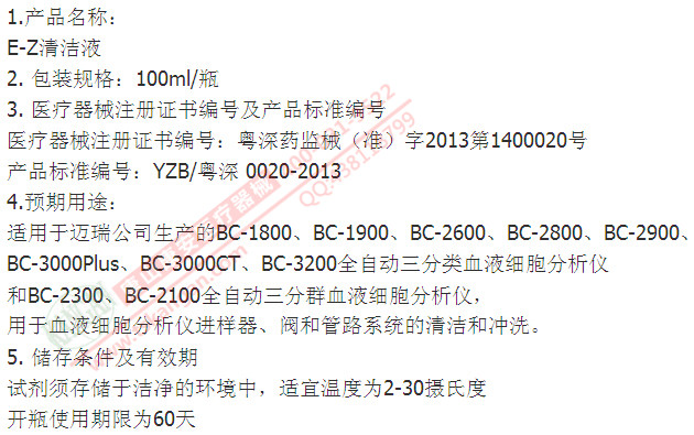 EZ清潔液_唐山診斷試劑_邁瑞試劑